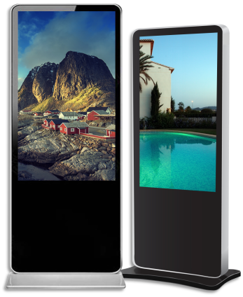 立式信息屏包括主控模块和显示模块组成,适用于网点大堂使用,用于智能导览、普惠金融、善融商务扶贫购、公共教育、网上银行、员工风采展示等功能。